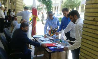 برپايي ميز خدمت شركت شهرك هاي صنعتي استان كرمانشاه در مراسم پرفيض نماز جمعه